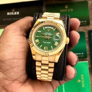 Original price was: ₹9,999.₹4,499Current price is: ₹4,499.Fibix Day Date Gold Green Dial 40mm Japanese Automatic Mens Watch
