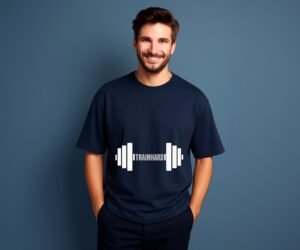 Fibix Men’s Oversized Pure Cotton Trainhard Graphic T-Shirt – Navy Blue