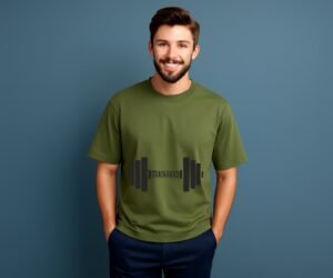 Fibix Men’s Oversized Pure Cotton Fist Barbell Graphic Gym T-Shirt – Olive Green