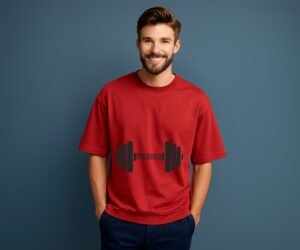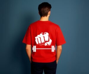 Fibix Men’s Oversized Pure Cotton Fist Barbell Graphic Gym T-Shirt – Red