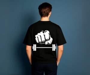 Fibix Men’s Oversized Pure Cotton Fist Barbell Graphic Gym T-Shirt – Black