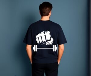 Fibix Men’s Oversized Pure Cotton Fist Barbell Graphic Gym T-Shirt – Navy Blue