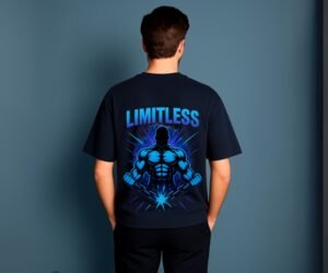 Fibix Men’s Oversized Pure Cotton Limitless Graphic T-Shirt – Navy Blue
