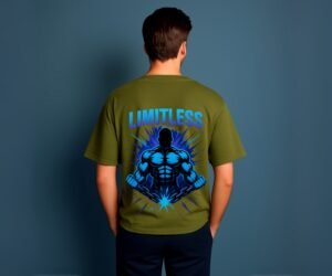 Fibix Men’s Oversized Pure Cotton Limitless Graphic T-Shirt – Olive Green