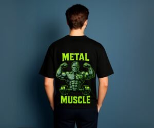 Fibix Men’s Oversized Pure Cotton Metal Muscle Graphic T-Shirt – Black