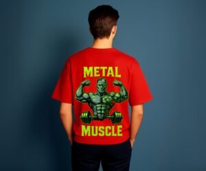 Fibix Men’s Oversized Pure Cotton Metal Muscle Graphic T-Shirt – Red