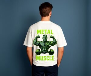Fibix Men’s Oversized Pure Cotton Metal Muscle Graphic T-Shirt – White