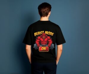 Fibix Beast Mode On Men’s Oversized Pure Cotton Gym T-Shirt – Black
