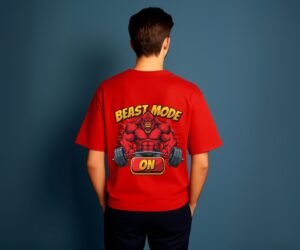 Fibix Beast Mode On Men’s Oversized Pure Cotton Gym T-Shirt – Red